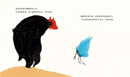 和三岁的女儿琪琪一起读这个故事的时候,她似乎对画面的色彩十分感兴趣,我一面念故事,一面观察她,她一定要看清楚每一个细节才会翻页,画家真是色彩的艺术家啊。故事念完了,她虽然不知道熊爱上蝴蝶是什么意思,但是,她会不停地问我,是不是像妈妈对琪琪那样?真是让我意外的效果,顿时感动的一塌糊涂。