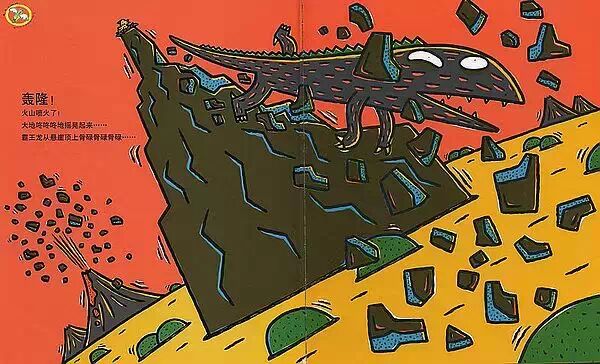 轰隆!火山喷发了,大地咚咚咚地摇晃起来……霸王龙从悬崖顶上骨碌骨碌……