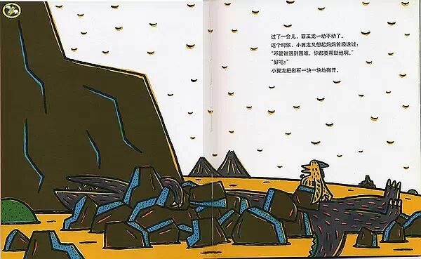 过了一会儿,霸王龙一动不动了。这个时候,小翼龙又想起妈妈曾经说过:“不管谁遇到困难,你都要帮助他啊。”“好吧!”小翼龙把岩石一块一块地搬开。