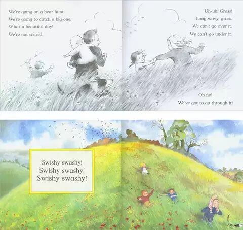 作者Michael Rosen 以韵文朗诗的方式讲述了一家大小一起去猎熊的故事,语句幽默生动,诗句朗朗上口,是小朋友们一起大声朗诵的好题材,更是闲暇之余,与孩子共享亲子游戏时光的好主题哦!