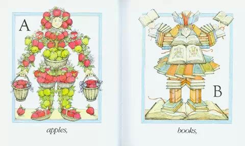 这本荣获凯迪克银奖的字母书,巧妙之处就是将枯燥的字母学习安排成一次奇特壮观的购物旅行,重新演绎了26个字母的精彩。每一个字母都幻化做五彩缤纷的礼物,A-apple, B-books……,漫步在一个最不寻常的市场里,购买从A到Z的礼物,看看里面由各种小玩意儿组成的小人儿,边玩边学,太有意思啊!