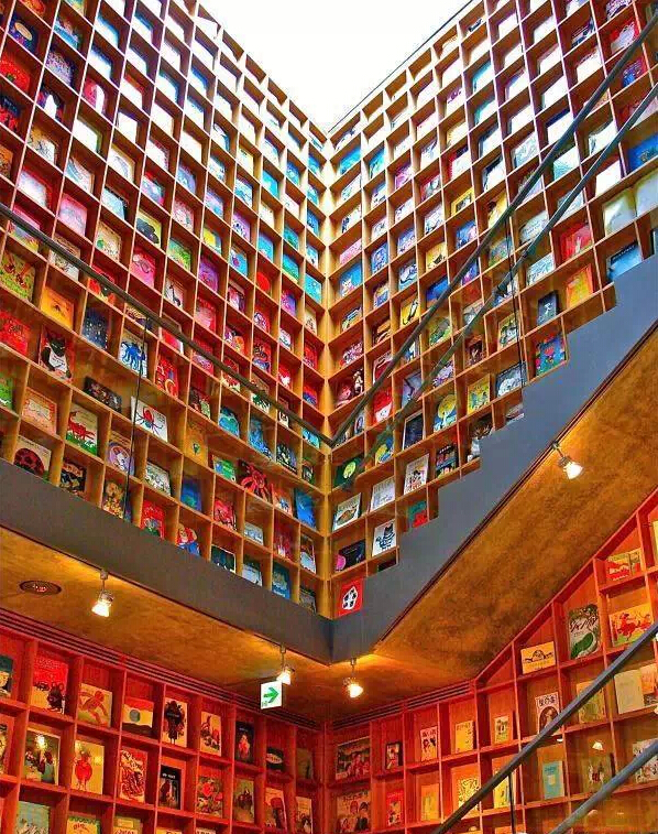 日本福岛县的“图画书图书馆”,震撼吧!这个图书馆在世界上很有名,都快成景点了。