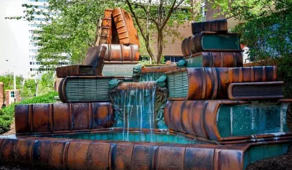 为引发孩子的阅读兴趣,儿童图书馆经常有好玩的设计。门口放这样一个喷泉,有点像要走进某个“魔法学院”。