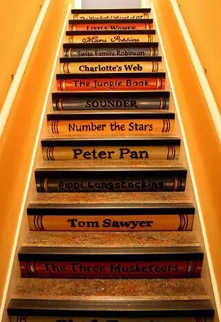 美国密苏里州圣路易斯儿童博物馆中的“神奇书屋”,楼梯是不是很有意思,上面写着美国小孩必读书的书名~