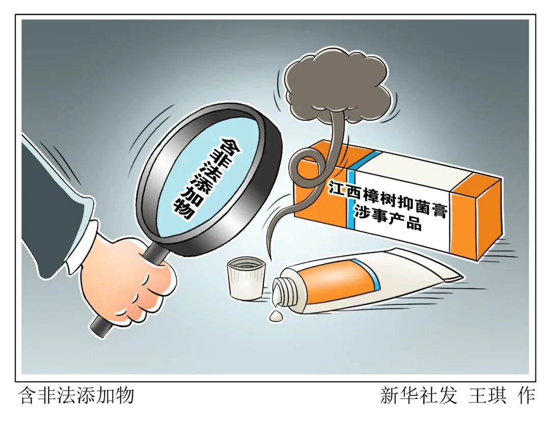 针对近日社会关注的江西樟树抑菌膏事件,记者从江西省樟树市委宣传部获悉,经调查检测发现,江西真润健康产业有限公司生产的七草两叶抑菌膏非法添加了丙酸氯倍他索。目前,当地已责令涉事企业停止生产,库存违禁产品已封存,对涉事企业做出罚款、吊证等处罚。